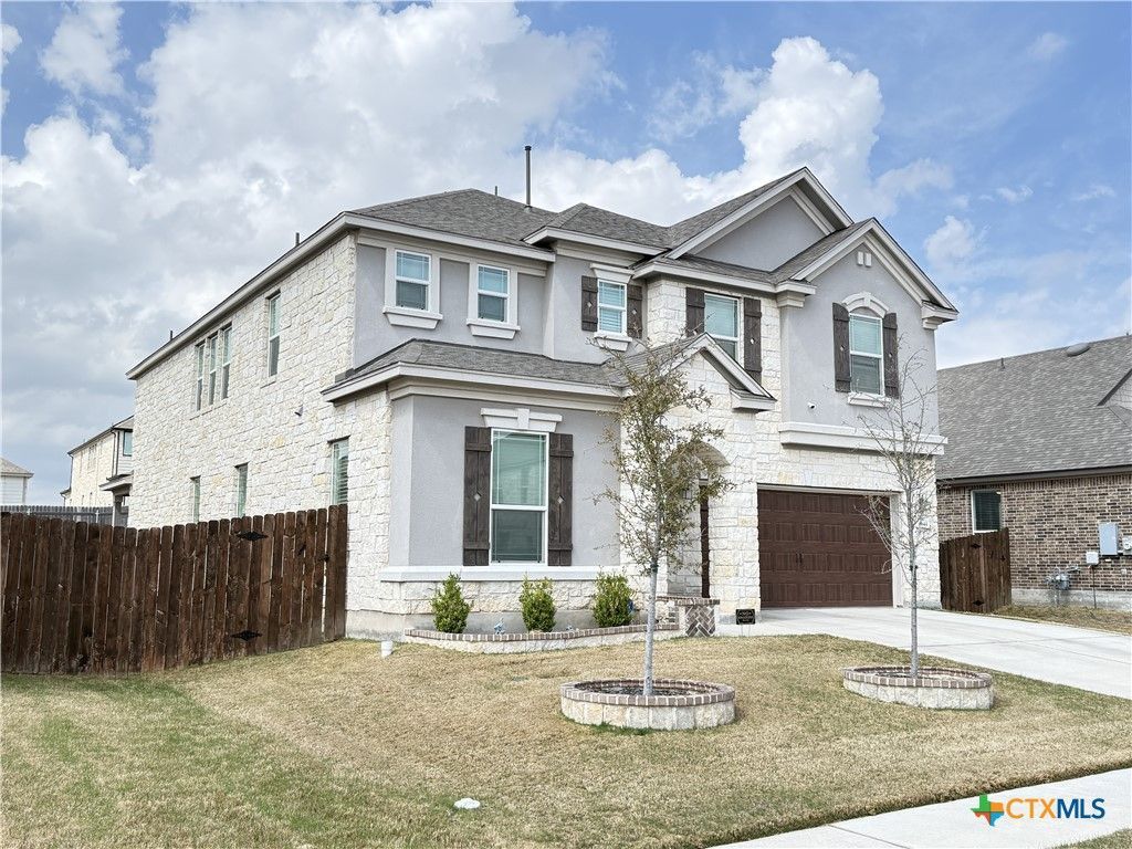 Welcome to 4644 Padula Drive, a stunning 2022-built masterpiece in the highly sought-after Salerno community. This expansive two-story residence spans 3,746 square feet, offering a perfect blend of modern sophistication & versatile living space. With five spacious bedrooms, three full baths, & a two-car garage -wired for EV charging capability, this home is designed for those who value both scale and style. The heart of the home is a breath-taking, chef-inspired kitchen. It features rich, dark cabinetry, shimmering quartz countertops, a classic subway tile backsplash, & premium stainless steel appliances. The oversized center island, accented by chic gold fixtures, serves as a natural gathering point, while the adjacent butlers pantry with walk-in pantry adds a touch of high-end utility. The open-concept main level flows seamlessly from the formal dining room into a bright breakfast nook and a sun-drenched living area, all anchored by sleek, durable flooring and a neutral, contemporary palette. A guest suite is cleverly positioned away from the main living spaces for privacy. Upstairs, retreat to the massive primary suite, a true sanctuary featuring a unique attached office or flex space?an ideal setup for todays remote professional or a private fitness area. A versatile, oversized loft provides the ultimate secondary living area for movie nights, gaming, or a homework hub. Three additional well-appointed bedrooms ensure ample space & privacy for residents and guests alike. The Salerno community offers a premier lifestyle with resort-style amenities including a swimming pool, clubhouse, & playground. Situated minutes from the best of Round Rock, including Dell Diamond, Old Settlers Park, Kalahari Resort, & shopping at the Round Rock Premium Outlets. With easy access to SH-130 and IH-35, your commute is effortless. Experience the pinnacle of modern Texas living in this exceptional property. Seller will consider offering an interest rate buy down.